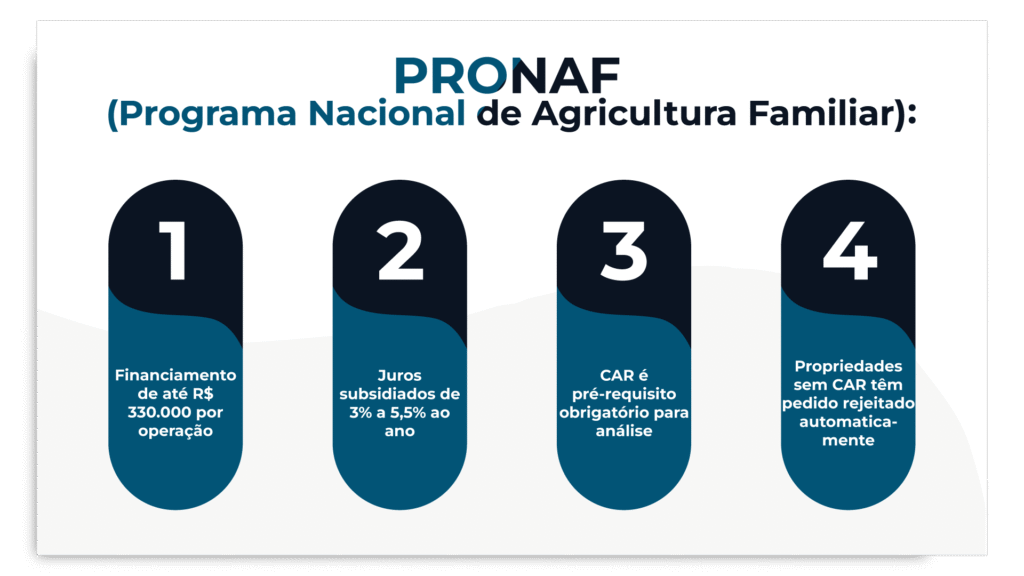 PRONAF Florestal: Acesso a financiamento específico para florestas plantadas. Requisito: CAR com área de silvicultura delimitada.