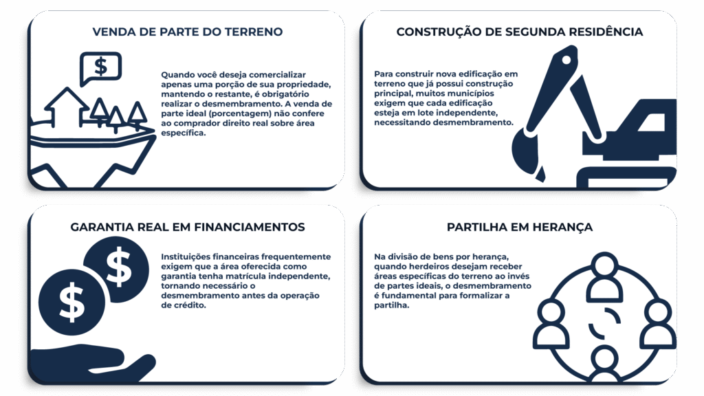 No entanto, muitos proprietários desconhecem os requisitos técnicos e legais necessários para realizar um desmembramento. A falta de planejamento adequado pode resultar em custos elevados, prazos prolongados ou até mesmo na impossibilidade de executar a divisão desejada.