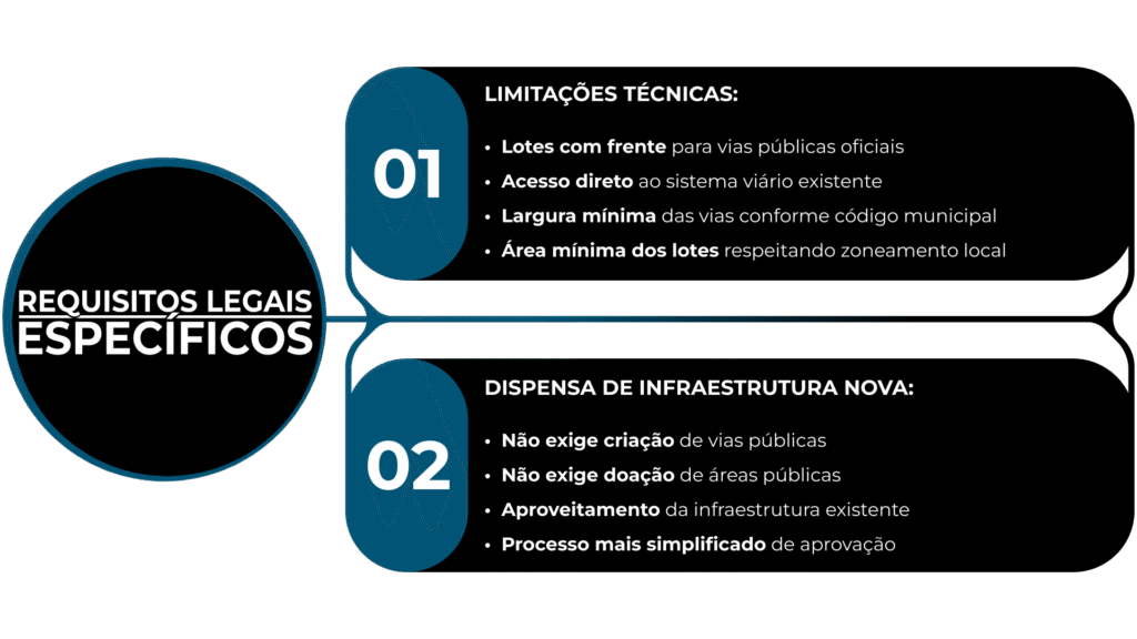 • Processo híbrido entre rural e urbano: A aprovação requer tramitação tanto nos órgãos municipais de controle urbanístico quanto no INCRA, caracterizando procedimento mais complexo que demanda atenção às legislações de ambas as esferas