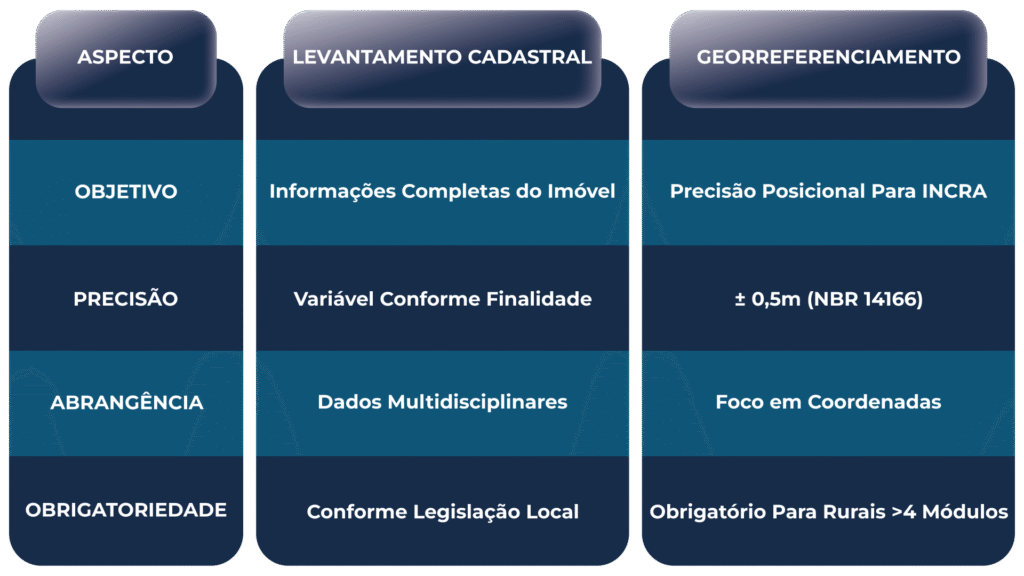 É importante distinguir o levantamento cadastral do georreferenciamento: